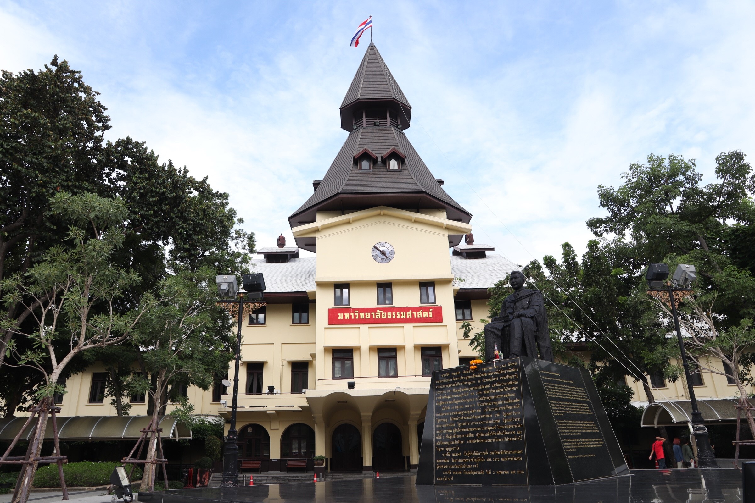 เป็นอาคารหลังแรกของมหาวิทยาลัยวิชาธรรมศาสตร์และการเมือง ออกแบบโดยนายหมิว อภัยวงศ์ ตามคำแนะนำของบุคคลสำคัญของมหาวิทยาลัย ปรับปรุงจากตึกเก่า 4 หลังของทหารโดยสร้างหลังคาเชื่อมแต่ละตึก จนกลาย เป็น อาคารหลังเดียวกัน ส่วนกลางของตึกได้สร้างอาคาร 3 ชั้นขึ้นเพิ่มเติมโดยมี “โดม” เป็นสัญลักษณ์ตรงกลาง รูปแบบ ของโดมนี้ กล่าวอธิบายกันในภายหลังว่านำรูปแบบมาจากดินสอแปดเหลี่ยมที่เหลาจนแหลมคม เพื่อแสดงถึงภูมิปัญญา ที่สูงส่ง ของการจัดการศึกษา