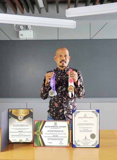 Asst. Prof. Dr. Kieansak Saengkliang, Lecturer of the Faculty of Architecture and Urban Planning, Thammasat University designs a pilot space for the coexistence between "human" and "bird" under the name of "BirDs' LAND, An Innovative Public Spaces for Bird-Friendly Environment", which is an innovative design work that has been recognized internationally by winning 3 awards in the international competition, Africa Invention & Innovation Expo 2022 (AIIE 2022) in Nigeria, Africa.