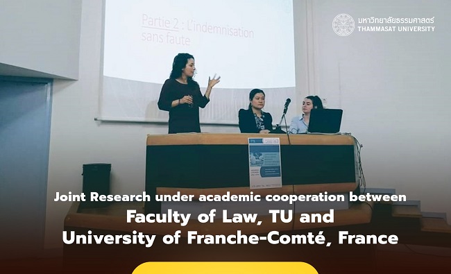 Faculty of Law, Thammasat University and the Faculty of Law, University of Franche-Comté, France have conducted joint research on the topic “No-fault Compensation for medical injury and healthcare: a study of the French and Thai systems. (L'indemnisation des accidents médicaux non fautive en France et en Thaïlande)" The researcher was Assoc.Prof.Dr. Niramai Phitkhae Manjit, Associate Dean of Thammasat University, Lampang Campus; and Amanda Dubuis, Lecturer at University of Franche-Comté.