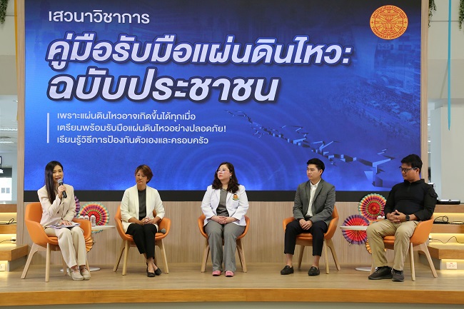 Thammasat University organized a special academic seminar on the topic “Earthquake Preparedness Guide: A Citizen's Edition,” creating a space for knowledge exchange and proposing ways to prepare citizens for earthquakes or other potential disasters. The event shared knowledge on building safety assessment during earthquakes, including AI-assisted tools, and provided guidelines for safety, mental health, and media literacy. The seminar was inaugurated by Associate Professor Dr. Dumrong Adunyarittigun, Vice Rector for Academic Affairs at Thammasat University, held at the Puey Ungphakorn Library, Thammasat University, Rangsit Center.