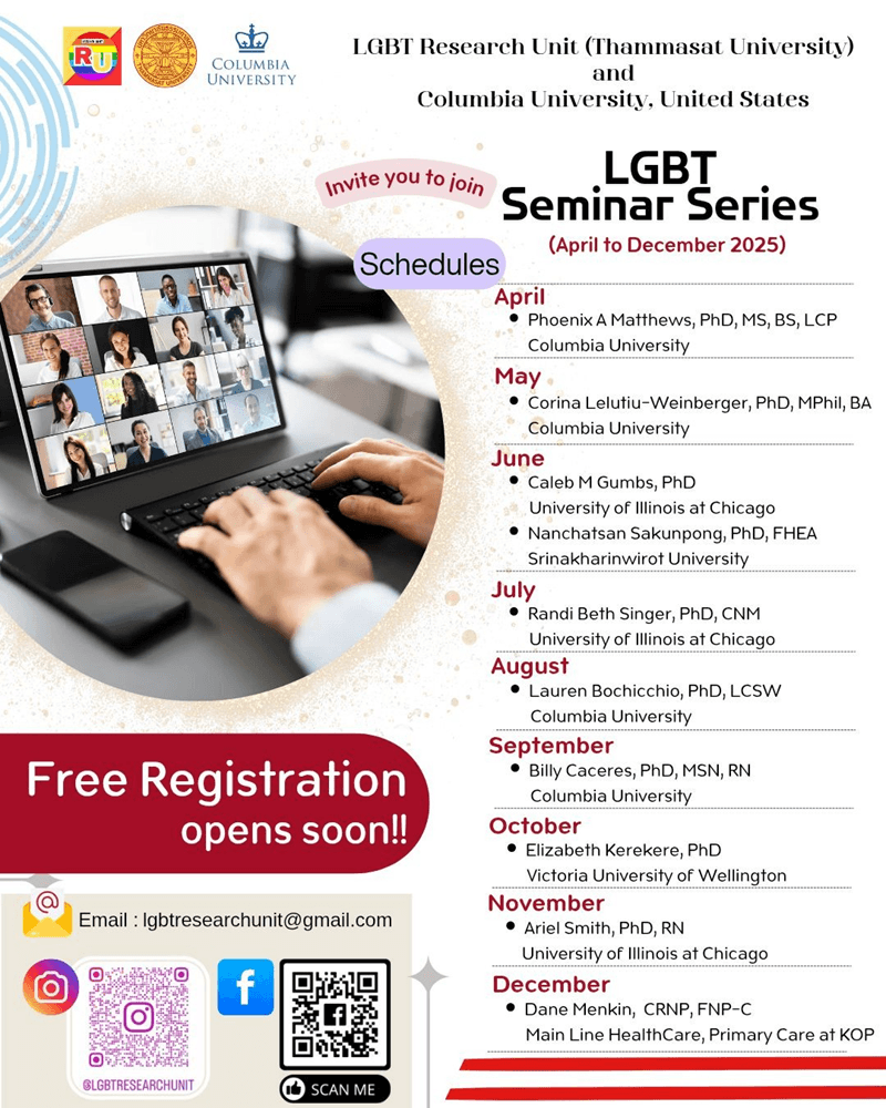 The LGBT Research Unit at Thammasat University and Columbia University, United States, invites you to join the year-long 2025 LGBT Seminar Series