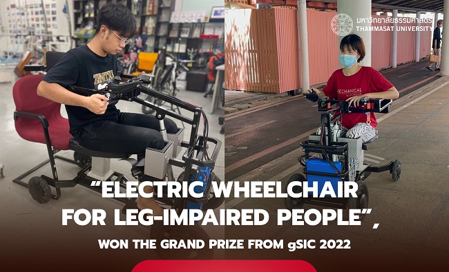 As a result, a team from Thammasat University received a Gold Award for innovative design for the disabled and the elderly in the work "New design power wheelchair for easy transfer" developed by Ms. Thanrada Wiriyasubudom, Department of Mechanical Engineering, Mr. Supasin Somboondee, Department of Mechanical Engineering and Mr. Kavin Sirichantakul, Department of Mechanical Engineering, TEP Program, having Asst. Prof. Dr. Banyong Rungrueangduayboon, Lecturer at the Faculty of Engineering, Thammasat University as an advisor.