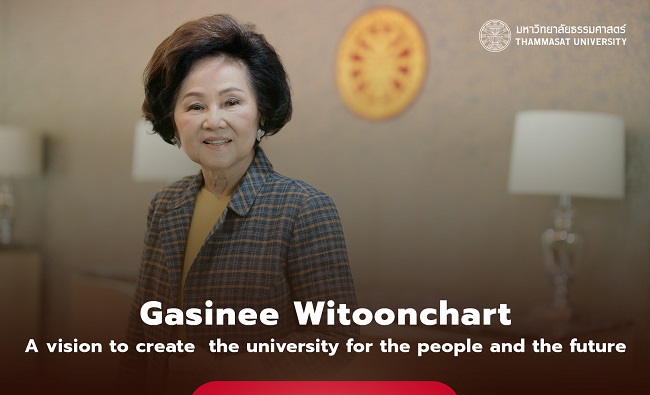 Becoming Thammasat University's rector since 2017, Ms Gasinee has set three missions to realize the university's vision --- adopting innovation and new technology in the university's operation and teaching; building new leaders; maintaining Thammasat's spirit to serve the people and the society, and translating this spirit into every study program, course and activity.