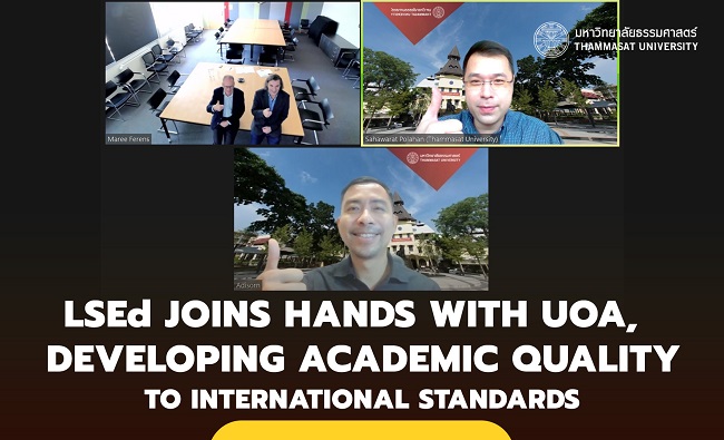 Faculty of Learning Sciences and Education, Thammasat University signed an academic cooperation agreement with the Faculty of Education and Social Work, The University of Auckland (UOA), New Zealand, with Asst. Prof. Dr. Adisorn Chantrasook, Dean of the Faculty of Learning Sciences and Education, Thammasat University and Associate Professor Dr. Mark Barrow, Dean of Faculty of Education and Social Work, UOA attended the Virtual Signing Ceremony with Dr. Sahavarat Polharn, Associate Dean for Administration and Network Relations, Faculty of Learning Sciences and Education, Thammasat University and Professor Dr. Marek Tesar, Deputy Dean for International Affairs, Faculty of Education and Social Work, UOA as witnesses in order to support and promote academic progress together towards academic excellence improving teaching efficiency, and the development and exchange of knowledge according to the philosophy and mission of both institutions.