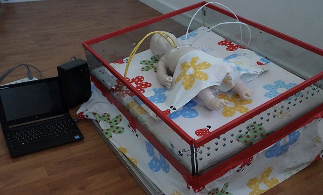 This is a teaching media innovation for simulation-based learning in nursing education: Infant respiratory care. It consists of automatic devices of adjustable bed and infant model used in nursing practice for pediatric patients with sputum retention. The device can be programmed automatically according to the infant model’s abnormal breath sounds and the results will be displayed through the computer or tablet control panel. It allows students to recognize the results of real-time nursing practice decisions.