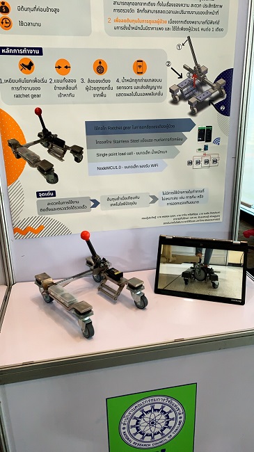 Mr. Pornskul talks about “Patient Bed Weight Scale” innovation that today, lots of patients cannot move from bed such as after surgery patients and badly injured patients. These patients need to be weighted for further treatment process including calculating drug dosage and measuring patient’s intake and output. However, measuring patient weight is complex and difficult to do. It consumes staff’s energy and time. Therefore, we create this invention to solve the problem. Our concept is to build weighing scale on bed and it is movable to other patient beds. It will be easy to use and save cost and time.