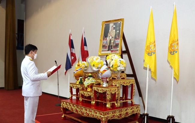 ในพิธีถวายสัตย์ปฏิญาณเพื่อเป็นข้าราชการที่ดีและพลังของแผ่นดิน คำกล่าวมีใจความว่า “จะประพฤติปฏิบัติตนเป็นข้าราชการและพนักงานที่ดี มีความซื่อสัตย์สุจริต เจริญรอยตามเบื้องพระยุคลบาท มุ่งมั่นแน่วแน่แก้ไขปัญหาของชาติและของประชาชน สร้างสรรค์คุณประโยชน์แก่แผ่นดิน ดำเนินชีวิตโดยยึดมั่นในหลักธรรมคำสอนแห่งศาสนาและตามแนวทางในพระบรมราโชวาทตลอดไป”