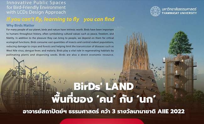 BirDs' LAND Innovative Public Spaces for Bird-Friendly Environment นวัตกรรมการออกแบบนำร่องเพื่อการอยู่ร่วมกันระหว่างคนกับนก คว้ารางวัล AIIE 2022