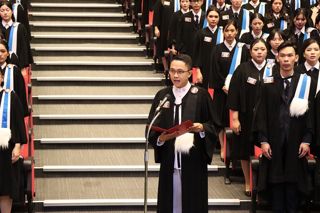 “ข้าพเจ้าและพระราชินีมีความยินดีที่ได้มามอบปริญญาบัตรแก่ผู้สำเร็จการศึกษา จากมหาวิทยาลัยธรรมศาสตร์ในวันนี้ ขอแสดงความชื่นชมกับผู้ทรงคุณวุฒิและบัณฑิตทุกคน ที่ได้รับเกียรติและความสำเร็จ ผู้สำเร็จการศึกษาเป็นบัณฑิต ควรจะมีทั้งความรู้ และความคิด เป็นปัจจัยคู่กันและรับใช้ในการทำงาน ความคิดนั้นเป็นเป็นปัจจัยเบื้องต้น คือจะต้องเกิดความคิดขึ้นก่อน จึงจะนำความรู้มาใช้ให้ถูก ตรง และเป็นประโยชน์ได้ บัณฑิตจึงจำเป็นต้องฝึกฝนความคิด ให้เป็นไปในทางที่ดีที่เจริญอยู่เสมอ พร้อมทั้งเสริมสร้างความรู้ให้ยิ่งกว้างขวางและงอกงาม แต่ละคนจะได้สามารถประกอบอาชีพการงาน สร้างสรรค์ความสำเร็จ ให้แก่ตนเองและส่วนรวมได้ สมกับที่เป็นบัณฑิต ข้าพเจ้าขอมอบปริญญาบัตรให้แก่ บัณฑิตของมหาวิทยาลัยแห่งนี้ ตั้งแต่บัดนี้เป็นต้นไป ขออำนวยพรให้ทุกคน ประสบความสุขและความเจริญก้าวหน้า สมดังปรารถนาทุกประการ”