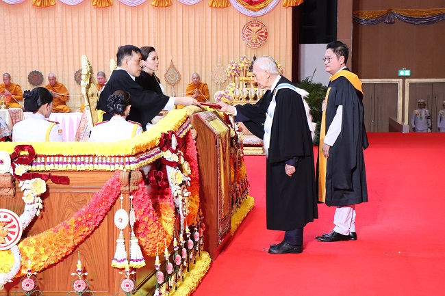 นอกจากนี้ ได้มอบปริญญาดุษฎีบัณฑิตกิตติมศักดิ์ ประจำปีการศึกษา 2566 แด่ผู้ทรงคุณวุฒิ จำนวน 5 ท่าน ได้แก่ 1) นายอานันท์ ปันยารชุน บัญชีดุษฎีบัณฑิตกิตติมศักดิ์ 2) ศาสตราจารย์พิเศษ นรนิติ เศรษฐบุตร รัฐศาสตรดุษฎีบัณฑิตกิตติมศักดิ์ 3) Dr.Michael Byram ปรัชญาดุษฎีบัณฑิตกิตติมศักดิ์ สาขาวิชาภาษาอังกฤษศึกษา 4) นางทิชา ณ นคร ปรัชญาดุษฎีบัณฑิตกิตติมศักดิ์ สาขาวิชาวิทยาการเรียนรู้ และ 5) Professor ShuGuang Yu ปรัชญาดุษฎีบัณฑิตกิตติมศักดิ์ สาขาวิชาการแพทย์บูรณาการ