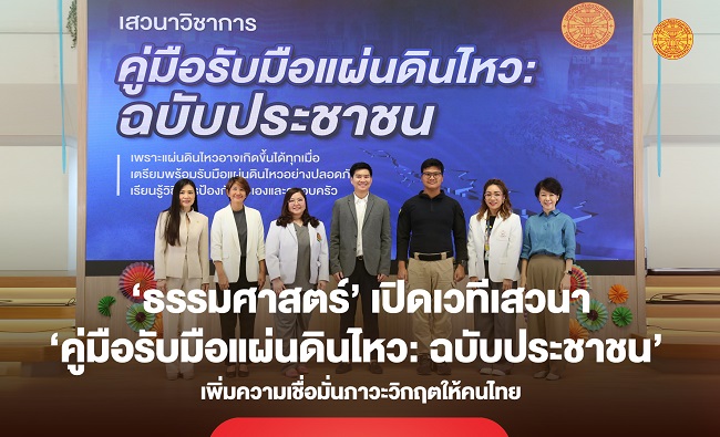 มหาวิทยาลัยธรรมศาสตร์ (มธ.) จัดงานเสวนาวิชาการครั้งพิเศษในหัวข้อ “คู่มือรับมือแผ่นดินไหว: ฉบับประชาชน” เปิดพื้นที่แลกเปลี่ยนองค์ความรู้และเสนอแนวทางการเตรียมความพร้อมให้ประชาชนรับมือกับแผ่นดินไหวหรือภัยพิบัติอื่น ๆ ที่อาจเกิดขึ้น พร้อมสร้างความตระหนักรู้ในสังคมไทย และยกระดับความสามารถของประชาชนในการดูแลตนเอง ครอบครัว และชุมชนในยามวิกฤต ผ่านการถ่ายทอดความรู้จากผู้เชี่ยวชาญด้านวิศวกรรม-วิศวกรรมโยธา ซึ่งมีประสบการณ์ลงพื้นที่จริง แชร์วิธีการตรวจสอบรอยร้าวและความเสียหายเบื้องต้นของอาคารที่อยู่อาศัย พร้อมสาธิตเทคฯ AI ที่ช่วยในการประเมินสภาพอาคารผ่านการประมวลผลภาพถ่าย เพื่อให้ประชาชนและวิศวกรรมโยธาสามารถเข้าถึงเครื่องมือประเมินความปลอดภัยได้ง่ายขึ้นในยุคดิจิทัล นอกจากนี้ ยังดึงผู้เชี่ยวชาญในวงการแพทย์ จิตวิทยาและการสื่อสารที่มานำเสนอแนวทางในการปฏิบัติสำหรับประชาชนต่อสถานการณ์แผ่นดินไหวทั้งด้านความปลอดภัย สภาพจิตใจ และการรู้เท่าทันข่าวสาร โดยมี รศ. ดร.ดำรงค์ อดุลยฤทธิกุล รองอธิการบดีฝ่ายวิชาการ มหาวิทยาลัยธรรมศาสตร์ กล่าวเปิดงานเสวนาฯ เมื่อวันศุกร์ที่ 4 เมษายน 2568 ณ หอสมุดป๋วย อึ๊งภากรณ์ มหาวิทยาลัยธรรมศาสตร์ ศูนย์รังสิต และผ่าน Live Facebook Thammasat University