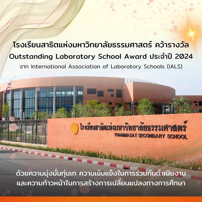 โรงเรียนสาธิตแห่งมหาวิทยาลัยธรรมศาสตร์ ได้รับรางวัล Outstanding Laboratory School Award 2024 จากสมาคมโรงเรียนสาธิตนานาชาติ (IALS) สหรัฐอเมริกา