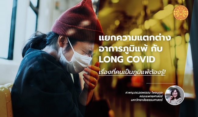 ศ.พญ.ดร.อรพรรณ โพชนุกูล ผู้อำนวยการศูนย์ความเป็นเลิศโรคภูมิแพ้ โรคหืด และโรคระบบหายใจ โรงพยาบาลธรรมศาสตร์เฉลิมพระเกียรติ และอาจารย์คณะแพทยศาสตร์ มหาวิทยาลัยธรรมศาสตร์ จะมาอธิบายแยกความแตกต่างของอาการภูมิแพ้กับ Long COVID รวมถึงการดูแลตัวเองที่คนเป็นภูมิแพ้ต้องรู้