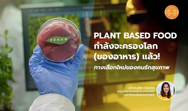 ผศ.ดร.สุธีรา วัฒนกุล อาจารย์ประจำคณะวิทยาศาสตร์และเทคโนโลยี มหาวิทยาลัยธรรมศาสตร์ ให้ข้อมูลเกี่ยวกับ Plant Based Food ไว้อย่างน่าสนใจว่า “การทาน Plant Based จะช่วยแก้ Climate Change ทางอ้อมได้” เพราะ Plant Based คือ ผลิตภัณฑ์สำเร็จรูปที่ปราศจากเนื้อสัตว์ โดยเป็นผลิตภัณฑ์ที่มีส่วนผสมจากพืช ผัก ถั่ว รวมถึงกลุ่มของสาหร่ายและรา เน้นโปรตีนที่มาจากพืช เน้นการแต่งสีแต่งกลิ่น เพื่อให้มีรสชาติดี น่ารับประทาน และใกล้เคียงกับโปรตีนจากสัตว์
