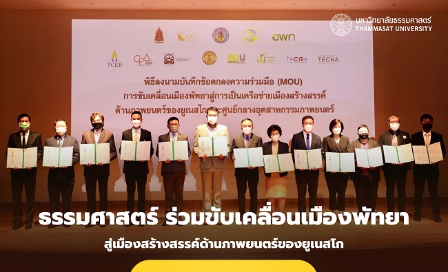 มหาวิทยาลัยธรรมศาสตร์ ร่วมลงนาม MOU เพื่อขับเคลื่อนเมืองพัทยา สู่การเป็นเครือข่ายเมืองสร้างสรรค์ด้านภาพยนตร์ของยูเนสโก และศูนย์กลางอุตสาหกรรมภาพยนตร์