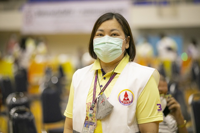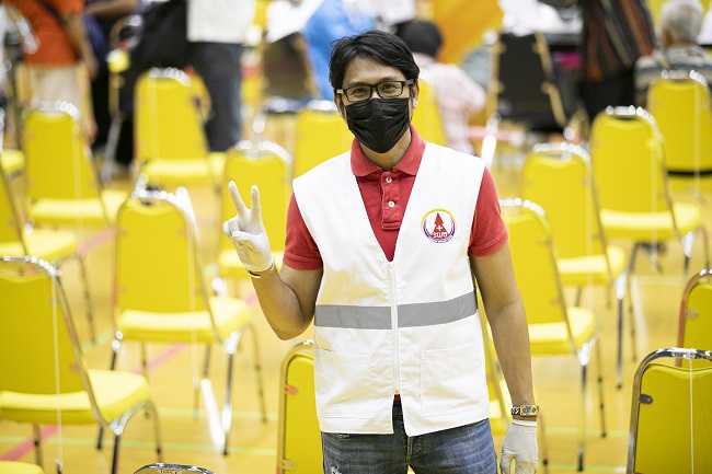 นอกจากทีมบุคลากรทางการแพทย์แล้ว ในศูนย์รับวัคซีนโควิด-19 ธรรมศาสตร์รังสิตแห่งนี้ ยังได้ ‘ทีมจิตอาสา’ เข้ามาร่วมขับเคลื่อนศูนย์ฯ ให้บริการประชาชนอย่างเต็มกำลัง