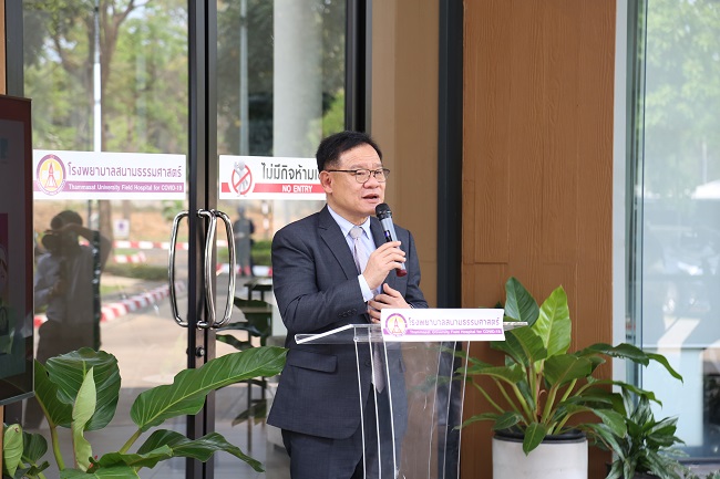 อนึ่ง โรงพยาบาลสนามธรรมศาสตร์ ขนาด 308 เตียง ได้เปิดดำเนินงานครั้งแรกในวันที่ 23 มี.ค. 2563 จากความคิดริเริ่มของ มหาวิทยาลัยธรรมศาสตร์และโรงพยาบาลธรรมศาสตร์เฉลิมพระเกียรติ ที่ต้องการร่วมแบ่งเบาภาระงานในระบบสาธารณสุข และช่วยเหลือประเทศชาติในการรับมือกับสถานการณ์การแพร่ระบาดทุกรุนแรงในช่วงเวลานั้น ซึ่งนับเป็นโมเดลสำคัญที่ทำให้เกิดโรงพยาบาลสนามแห่งอื่น ๆ ทั่วประเทศตามมา