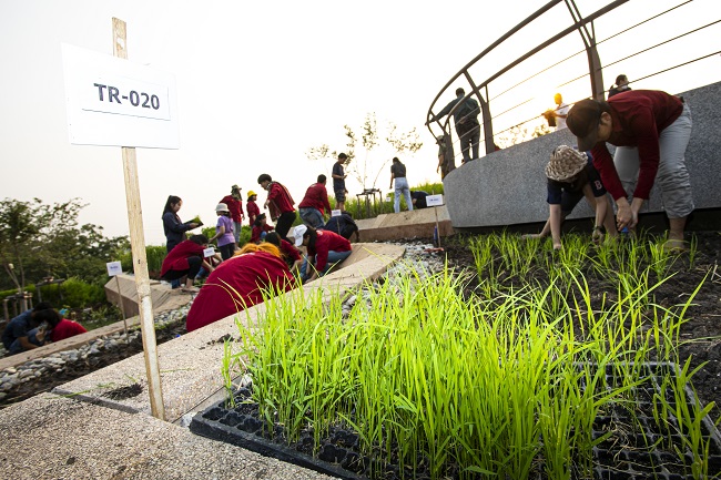 วันธรรมศาสตร์ทำนาและปลูกผักบนหลังคา ครั้งที่ 1 บนสวนผักออร์แกนิกลอยฟ้าขนาดใหญ่ที่สุดในเอเชีย ครอบคลุมพื้นที่บนหลังคาอาคารอุทยานการเรียนรู้ ป๋วย 100 ปี