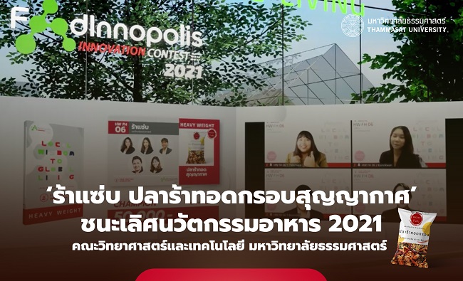 “ร้าแซ่บ ปลาร้าทอดกรอบสุญญากาศ” ผลงานจากทีม “ร้าแซ่บ” คณะวิทยาศาสตร์และเทคโนโลยี มหาวิทยาลัยธรรมศาสตร์ ซึ่งรับรางวัลชนะเลิศจากการแข่งขันโครงการ Food Innopolis Contest 2021 ในรุ่น Heavy Weights ในหัวข้อ Food Heritage Innovation เป็นอีกหนึ่งนวัตกรรมอาหารที่สามารถตอบโจทย์พฤติกรรมการใช้ชีวิตแบบ New Normal ได้เป็นอย่างดี