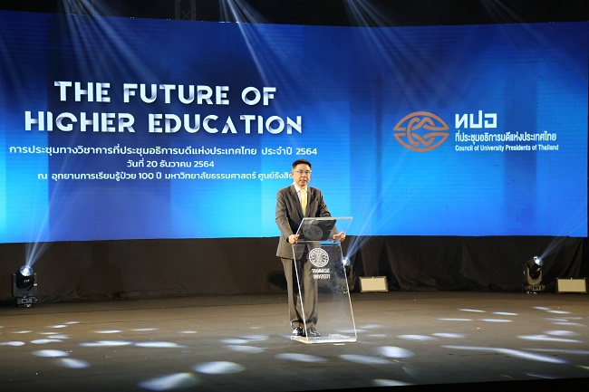 มหาวิทยาลัยธรรมศาสตร์ จัดการประชุมทางวิชาการที่ประชุมอธิการบดีแห่งประเทศไทย (ทปอ.) ประจำปี 2564 The Future of Higher Education เมื่อวันที่ 20 ธ.ค. 2564 พร้อมทั้งแถลงข่าวความร่วมมือในการพัฒนากำลังคน พัฒนาทักษะ การสร้างความปลอดภัย การป้องกัน รับมือ และลดความเสี่ยงจากภัยคุกคามทางไซเบอร์ โดยมี ศ.ดร.บัณฑิต เอื้ออาภรณ์ ประธาน ทปอ. รศ.เกศินี วิฑูรชาติ อธิการบดีมหาวิทยาลัยธรรมศาสตร์ ศ.ดร.ศุภชัย ปทุมนากุล รองปลัดกระทรวงการอุดมศึกษา วิทยาศาสตร์ วิจัยและนวัตกรรม น.อ.อมร ชมเชย รองเลขาธิการคณะกรรมการรักษาความมั่นคงปลอดภัยไซเบอร์แห่งชาติ ผศ.ดร.ภุชงค์ อุทโยภาค ประธานคณะกรรมการยุทศาสตร์การปรับเปลี่ยนสู่ความเป็นดิจิทัลของสถาบันอุดมศึกษาไทย ทปอ. ร่วมลงนามในบันทึกความร่วมมือ