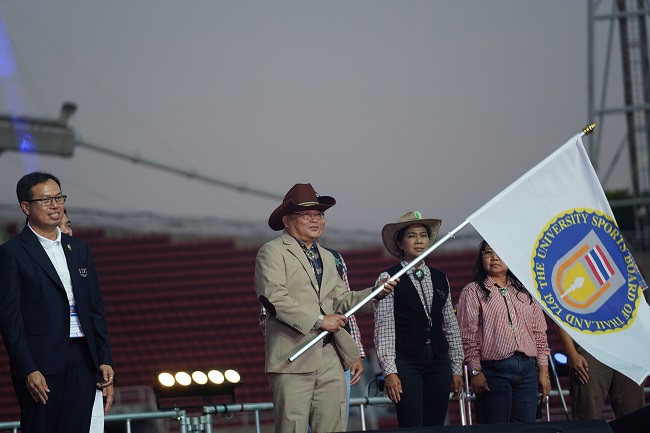 ในโอกาสนี้ รศ. ดร.วีระพล ทองมา อธิการบดีมหาวิทยาลัยแม่โจ้ พร้อมด้วยคณะผู้บริหารมหาวิทยาลัย รับมอบธงเจ้าภาพการแข่งขันกีฬามหาวิทยาลัยแห่งประเทศไทย ครั้งที่ 51 “อินทนิลเกมส์ 2026” จาก รศ. ดร.ชูสิทธิ์ ประดับเพ็ชร์ ประธานคณะกรรมการบริหารกีฬามหาวิทยาลัยแห่งประเทศไทย และ ศ. ดร.ศุภสวัสดิ์ ชัชวาลย์ อธิการบดีมหาวิทยาลัยธรรมศาสตร์ ประธานคณะกรรมการอำนวยการจัดการแข่งขันกีฬามหาวิทยาลัยแห่งประเทศไทย ในพิธีปิดการแข่งขันกีฬามหาวิทยาลัยแห่งประเทศไทย ครั้งที่ 50 “ธรรมศาสตร์เกมส์” ณ Main Stadium มหาวิทยาลัยธรรมศาสตร์ ศูนย์รังสิต