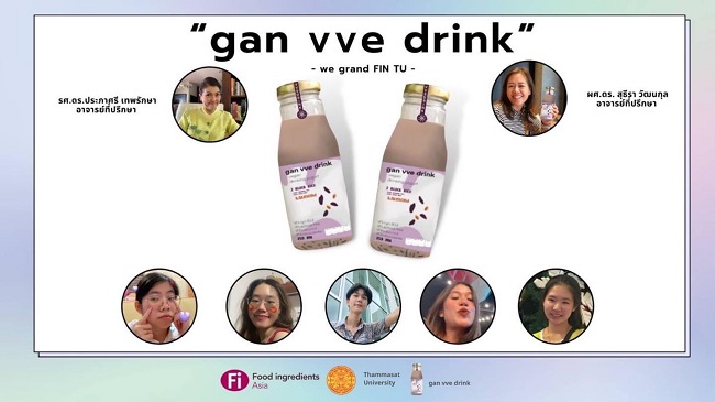นางสาวฐานิฎ หวังพุด ระบุว่า สิ่งแรกที่เห็นได้ชัดเลยก็ จาก “gan vve drink vegan drinking yogurt” คือ สีม่วง ผลิตจาก ‘ข้าวหอมนิล’ และ ‘ข้าวเหนียวก่ำ’ ซึ่งเป็นข้าวท้องถิ่นของไทยที่มีสีเข้ม และอุดมไปด้วยแอนโทไซยานิน สารต้านอนุมูลอิสระสีม่วง ทางเราจึงออกแบบผลิตภัณฑ์ให้สีม่วงของผลิตภัณฑ์เป็นจุดเด่น ถัดมาคือความเป็นนมเปรี้ยว สาเหตุที่เราทำเป็นนมเปรี้ยวนี้ เพราะเราต้องการให้การบริโภคมีความง่าย สะดวก ไม่ต้องตักกินเหมือนโยเกิร์ต เพียงแค่ปักหลอดก็กินได้แล้ว โดยเราทำให้แตกต่างจากนมเปรี้ยวทั่วไปตรงส่วนของปริมาณและเนื้อสัมผัส ด้วยปริมาณของนมเปรี้ยวส่วนใหญ่อยู่ที่ 120 มล. จึงอาจไม่อิ่มท้องและรู้สึกเบื่อในการทาน เราจึงเพิ่มปริมาณให้มากถึง 250 มล. และมีเนื้อสัมผัสของข้าวเหนียวก่ำ เคี้ยวหนุบหนับ เพิ่มความสนุกในการทาน แถมยังอยู่ท้องได้นานอีกด้วยค่ะ