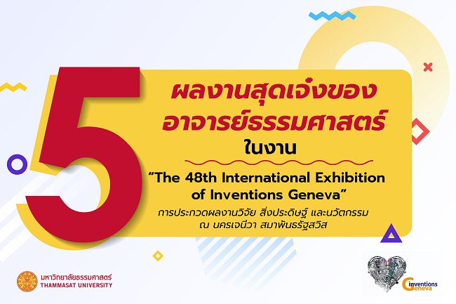 เมืองนวัตกรรมแห่งธรรมศาสตร์ เป็นอีกเรื่องหนึ่งที่มหาวิทยาลัยธรรมศาสตร์ปักหมุดเดินเครื่องมุ่งสู่การผลิตผลงานวิจัยและนวัตกรรมระดับแนวหน้าที่ตอบโจทย์สังคมไทยและสังคมโลก ยกระดับธรรมศาสตร์ให้เป็นมากกว่าพื้นที่ที่ใช้สำหรับการจัดการเรียนการสอนเพียงอย่างเดียว แต่พื้นที่แห่งนี้จะสร้างพลังการทำงานแห่งอนาคต (Future Workforce) ให้กับทุกคน ซึ่งระหว่างวันที่ 10 - 14 มีนาคม 2564 ที่ผ่านมา ทีมนักวิจัยมหาวิทยาลัยธรรมศาสตร์ ได้สร้างผลงานอันโดดเด่นและคว้ารางวัลระดับโลกมาได้ถึง 5 รางวัล จากเวทีการประกวดนวัตกรรมนานาชาติ ครั้งที่ 48 (The 48th International Exhibition of Inventions Geneva) ณ นครเจนีวา สมาพันธรัฐสวิส จัดขึ้นในรูปแบบ Online