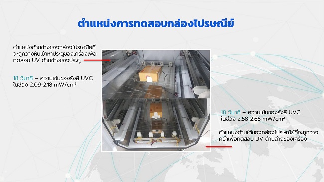ผศ.ดร.ปรัชญา เปรมปราณีรัชต์ คณะวิศวกรรมศาสตร์ มหาวิทยาลัยธรรมศาสตร์ เปิดเผยว่า เบื้องหลังของการพัฒนานวัตกรรมได้มีการทดลองใช้รังสี UVC ความยาวคลื่น 253.7 นาโนเมตร ที่พบว่า สามารถเข้าไปทำลาย DNA และ RNA ของสิ่งมีชีวิตขนาดเล็ก ทำให้ไม่สามารถแพร่พันธุ์ และก่อให้เกิดโรคได้อีก ซึ่งเท่ากับมีศักยภาพสูงในการทำลาย DNA และ RNA ของเชื้อโรคและฆ่าเชื้อโรคได้ ที่สำคัญความเข้มข้นของรังสี UVC สามารถฆ่าเชื้อไวรัสและเชื้อแบคทีเรียได้อีกด้วย จากนั้นได้คัดเลือกอุปกรณ์คุณภาพสูงจากบริษัทผู้ผลิตชั้นนำ ที่ไม่ก่อให้เกิดสารที่ทำลายชั้นบรรยากาศโอโซนของโลก ซึ่งเป็นสาเหตุของการเกิดปรากฏการณ์โลกร้อน