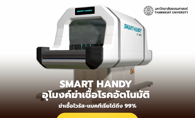 คณะวิศวกรรมศาสตร์ มหาวิทยาลัยธรรมศาสตร์ นำโดย ผศ.ดร.ปรัชญา เปรมปราณีรัชต์ และ คณะสหเวชศาสตร์ มหาวิทยาลัยธรรมศาสตร์ นำโดย รศ.ดร.วรดา สโมสรสุข ร่วมกันคิดค้นนวัตกรรม “Smart Handy อุโมงค์ฆ่าเชื้อโรคด้วยรังสี UVC” ที่สามารถฆ่าเชื้อไวรัสและแบคทีเรียบนวัสดุต่าง ๆ ได้ถึง 99% ในระยะเวลาเพียง 18 วินาที ช่วยเพิ่มประสิทธิภาพการคัดกรองเชื้อโรคได้อย่างมีประสิทธิภาพ ลดความเสี่ยงในการเกิดโรคระบาด และโรคอุบัติใหม่ในอนาคต
