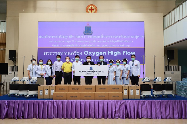 ศ.ดร.สุรพล นิติไกรพจน์ ประธานคณะกรรมการบริหารโรงพยาบาลธรรมศาสตร์เฉลิมพระเกียรติ ในฐานะโรงพยาบาลหัวหน้าโซนที่ 3 กรุงเทพมหานคร (กทม.) ได้กระจายเครื่องช่วยหายใจพระราชทาน (Oxygen High Flow) จำนวน 30 เครื่อง ซึ่งได้รับมอบจากกองทุนชัยพัฒนาสู้ภัยโควิด-19 ให้แก่โรงพยาบาลเครือข่ายทั้งภาครัฐและเอกชน รวม 4 แห่ง เพื่อใช้ในการดูแลรักษาผู้ป่วย เมื่อวันที่ 30 เมษายน 2564 ณ โรงพยาบาลธรรมศาสตร์ฯ จ.ปทุมธานี ทั้งนี้ ได้แก่ โรงพยาบาลปทุมธานี จำนวน 9 เครื่อง โรงพยาบาลมงกุฎวัฒนะ จำนวน 5 เครื่อง โรงพยาบาลบางปะกอก จำนวน 3 เครื่อง และโรงพยาบาลภัทร-ธนบุรี จำนวน 3 เครื่อง