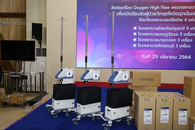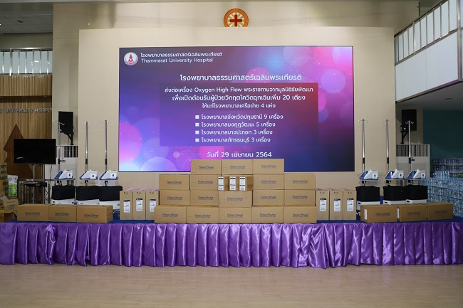 โรงพยาบาลธรรมศาสตร์เฉลิมพระเกียรติ กระจายเครื่องช่วยหายใจพระราชทาน จำนวน 30 เครื่อง แก่โรงพยาบาลเครือข่ายทั้งภาครัฐและเอกชน เพื่อใช้ในการดูแลรักษาผู้ป่วย