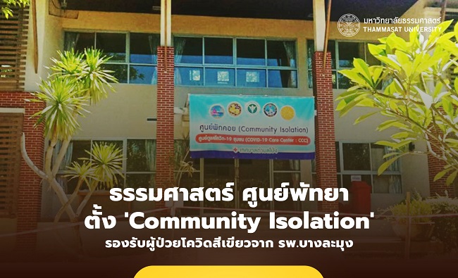 ผศ.ณัฐดนย์ พรรณุเจริญวงษ์ ผู้ช่วยอธิการบดีฝ่ายบริหารศูนย์พัทยา มหาวิทยาลัยธรรมศาสตร์ เปิดเผยว่า มธ.ได้จัดตั้งศูนย์พักคอยในชุมชน (Community Isolation) เทศบาลตำบลโป่ง ซึ่งตั้งอยู่บริเวณเรือนรับรอง ECO HOTEL ของ มธ. ศูนย์พัทยา ในการรองรับผู้ติดเชื้อโควิด-19 ที่มีอาการเล็กน้อย ไม่มีภาวะแทรกซ้อน และสามารถช่วยเหลือตัวเองได้ (กลุ่มสีเขียว) เพื่อกักตัว 14 วัน