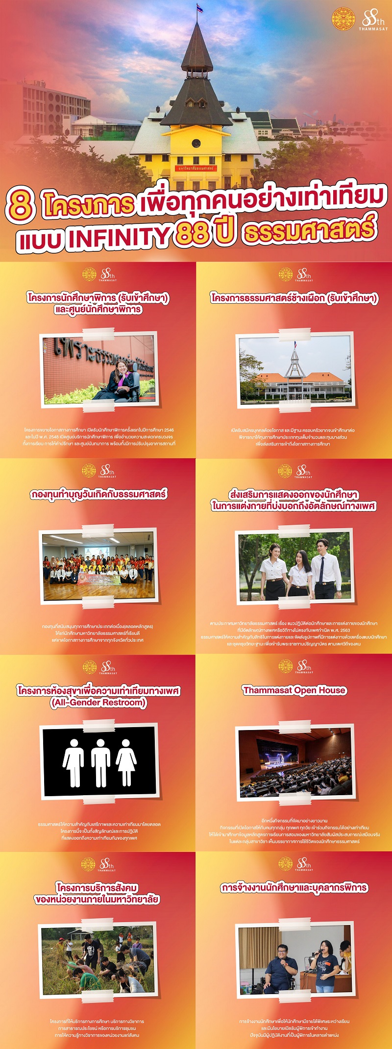 8 โครงการเพื่อทุกคนอย่างเท่าเทียม แบบ INFINITY 88 ปี ธรรมศาสตร์