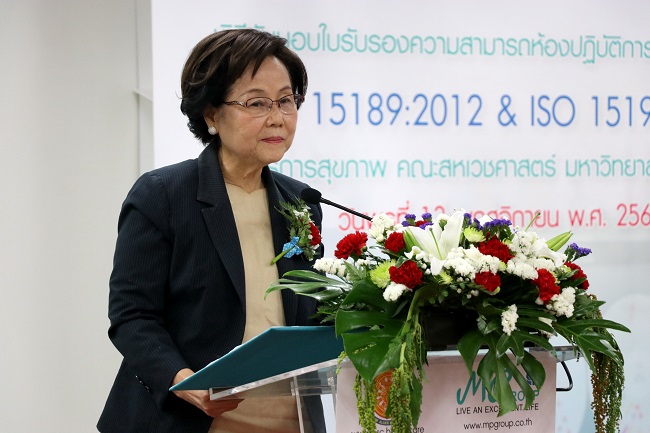 ด้าน รองศาสตราจารย์ ดร.ไพลวรรณ สัทธานนท์ คณบดีคณะสหเวชศาสตร์ มหาวิทยาลัยธรรมศาสตร์ กล่าวว่า ขอขอบคุณความร่วมมือร่วมแรงร่วมใจจากทีมงานห้องปฏิบัติการศูนย์บริการสุขภาพ คณะสหเวชศาสตร์ ตลอดจนทีมงานที่เกี่ยวข้องทุกท่าน ที่ได้มุ่งมั่นตั้งใจร่วมมือกันจนกระทั่งห้องปฏิบัติการศูนย์บริการสุขภาพ คณะสหเวชศาสตร์ มีระบบที่ได้คุณภาพและสามารถผ่านการรับรองความสามารถ ห้องปฏิบัติการตามมาตรฐาน ISO 15189.2012 และ ISO 15190:2003 จากสํานักมาตรฐานห้องปฏิบัติการ กรมวิทยาศาสตร์การแพทย์ได้