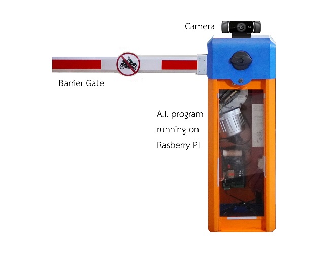 ผลงานระบบคัดกรองของเราใช้ระบบ AI เข้ามาคัดกรองจักรยานยนต์ และจักรยาน ซึ่งจะคัดกรองจักรยานยนต์ไม่ให้เข้ามาขับขี่ภายในเลนจักรยาน โดยแยกจากความแตกต่างของรูปร่างพาหนะ ซึ่งจะใช้กล้องในการตรวจจับ และส่งข้อมูลไปยัง Raspberry pi เพื่อประมวลผล และส่งสัญญานไปยังระบบไม้กั้นให้เปิด-ปิด ซึ่งไม้กั้นออกแบบให้มีการพับลงเก็บได้ ทำให้ไม่ชนกับเลนจักรยานที่มีหลังคา และเคลื่อนย้ายได้ง่าย นายสุริยา กล่าว