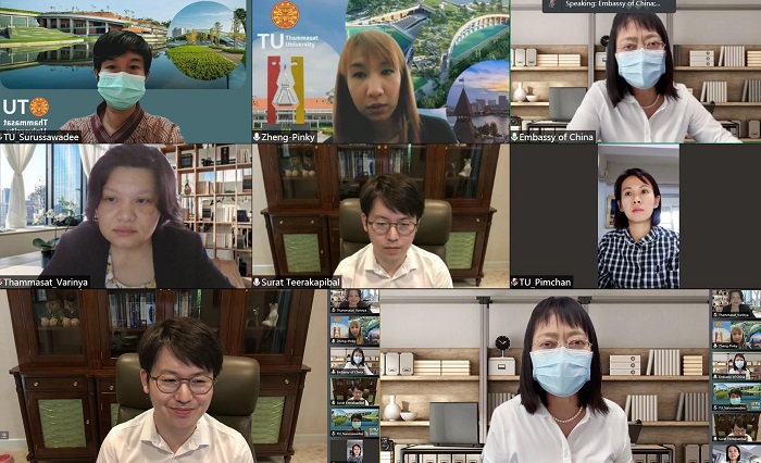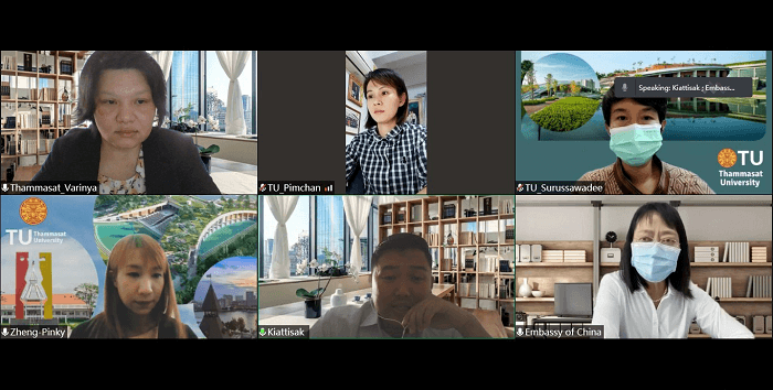 มหาวิทยาลัยธรรมศาสตร์ และสถานเอกอัครราชทูตสาธารณรัฐประชาชนจีนประจำประเทศไทย ร่วมประชุมหารือออนไลน์ เรื่องการรับเข้านักศึกษาชาวจีนแบบเต็มเวลา