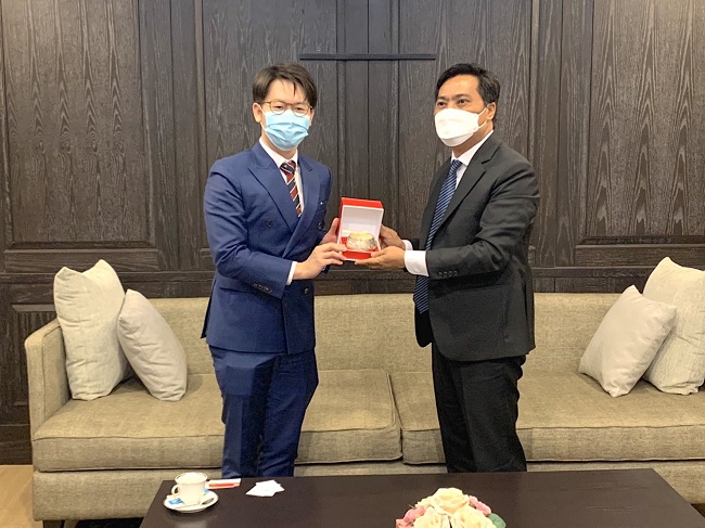 17 November 2021 - Assoc. Prof. Dr. Surat Teerakapibal, Vice Rector for Administration (Tha Prachan) and International Affairs, along with Assistant Rector for International Affairs, Lecturer Siripatra Patchanee (D.D.S), Director and staff from Office of International Affairs, paid a courtesy call on Mr. Than Htwe, the Minister of the Embassy of Myanmar in Thailand and greeted Ms. Phway Ei Thaw Lwin, First Secretary as well.