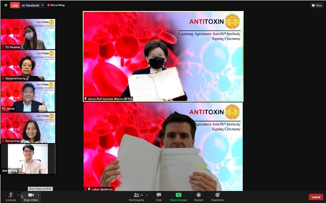 ธรรมศาสตร์ ลงนามสัญญาอนุญาตให้ใช้สิทธิในงานวิจัย กับบริษัท ANTITOXIN GmbH ประเทศเยอรมนี