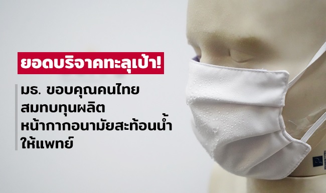 มหาวิทยาลัยธรรมศาสตร์ ขอบคุณทุกภาคส่วนช่วยสมทบทุนผลิตหน้ากากอนามัยสะท้อนน้ำ 60,000 ชิ้นแจกจ่ายบุคลากรทางการแพทย์ เพียง 1 วัน ยอดบริจาคทะลุเป้า 1.65 ล้านบาท